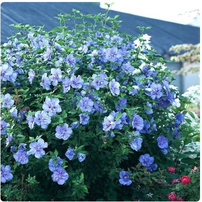 Саженец гибискуса древовидного Blue Chiffon — декоративный многолетник с эффектными махровыми цветами 10–15 см. Компактный куст или элегантное небольшое деревце с прямыми побегами даёт крупные лепестки с «рваными» краями: насыщенно‑синий тон с яркой фиолетовой серединкой делает растение выразительным акцентом в саду. Цветение однократное, с июля до конца лета.