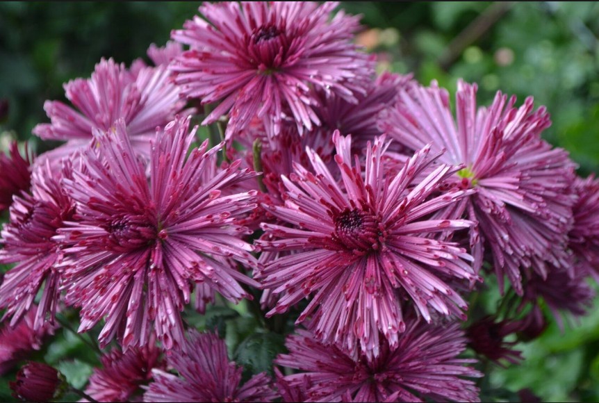 Саженец хризантемы «Бузков Ёжик» — кустовой корейский сорт с округлой, плотной кроной до 60 см. Листья насыщенно‑зелёные, соцветия до 8 см с игольчатыми лепестками лилово‑фиолетового тона. Цветение начинается в июле и продолжается до первых заморозков. Многолетник морозостойкий, в открытом грунте зимует без укрывного ухода.