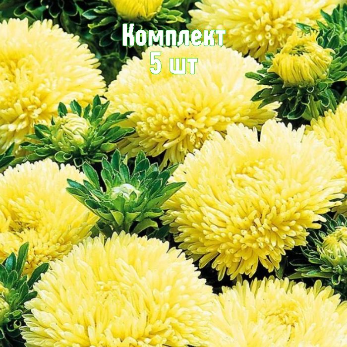 Высокорослая Желтая башня — эффектная астра с густомахровыми пионовидными соцветиями 8–12 см. Куст до 70 см, прочные ветроустойчивые стебли, на одном растении формируется в среднем 9–12 крупных цветков с мягкими лепестками и лёгким ароматом. Обильное цветение длится с августа до октября, делая осеннюю клумбу яркой и выразительной. Растения морозостойкие, неприхотливы при стандартном уходе и подходят для срезки.