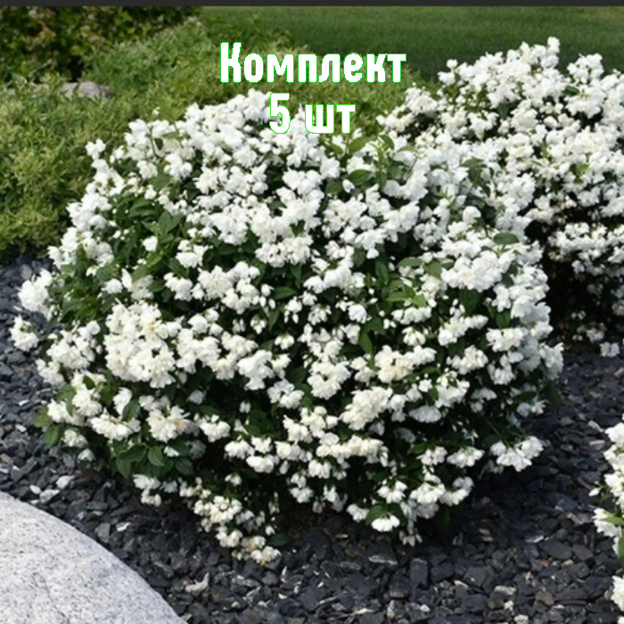 Саженцы чубушника (жасмина садового) сорта Сноубель — морозостойкий декоративный кустарник высотой 1,5–2 м с кроной ~1,5 м. Листва тёмно-зелёная, осенью желтеет. Цветки белоснежные, махровые, 3,5–4 см, собраны кистями по 5–7 штук, с деликатным ароматом. Очень обильное цветение в июне–июле; зацветает на 3-й год после посадки.