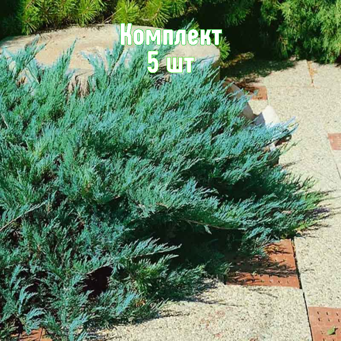 - 5 здоровых саженцев казацкого можжевельника Blue Danube по цене 4 — выгодная покупка для оформления рокариев, групповых посадок и почвопокровов.
