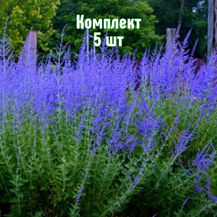 Перовския лебедолистная (Perovskia atriplicifolia) «Голубой Туман» — многолетник с эффектной серебристо-голубой листвой и пушистыми соцветиями, которые цветут с июля до поздней осени. В нашем каталоге — комплект из 5 саженцев по акции: 5 шт. по цене 4. Растение морозостойкое, формирует разросшийся куст до 1,2 м, напоминающий по облику крупную лаванду и источающий приятный аромат.