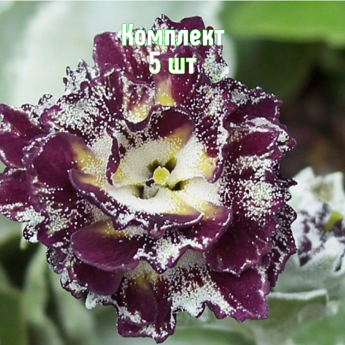 Примула ушковая «Мэрлин Стрип» — набор из 5 растений по цене 4. Компактные многолетники с плотными овальными розетками вечнозелёных блестящих листьев и лёгким серым налётом. На коротких прочных цветоносах (около 20 см) раскрываются нежно‑зеленые цветки с яркой малиновой полосой и тонким мучнистым налётом — эффектно и долго сохраняют декоративность.