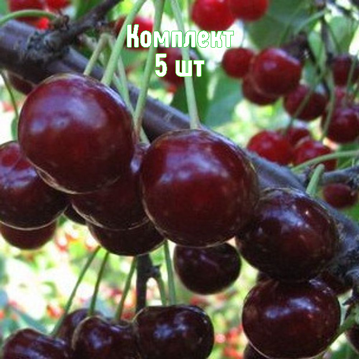 Саженцы вишни Ливенская — комплект 5 шт. по цене 4. Российский сорт, внесён в Госреестр (2001) для Центрально-Чернозёмной и Центральной зон. Дерево компактное (до 3 м), с раскидистой кроной. Цветёт в средние сроки, созревает во второй половине июля. В плодоношение вступает на 4-й год.