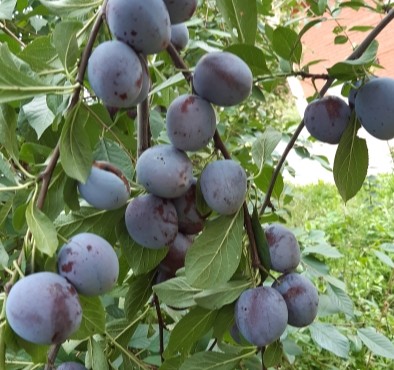 Саженец сливы «Этюд» — умеренно рослое плодовое дерево с округлой кроной и крепкой корневой системой. Ветви полураскидистые, побеги прямые; листья крупные, тёмно‑зелёные. Плоды крупные (28–30 г), овально‑яйцевидные, с плотной кожицей и восковым налётом, окраска насыщенно красно‑фиолетовая. Мякоть зелёновато‑желтоватая, сочная, мясистая, с гармоничным кисло‑сладким вкусом; косточка небольшая и легко отделяется.